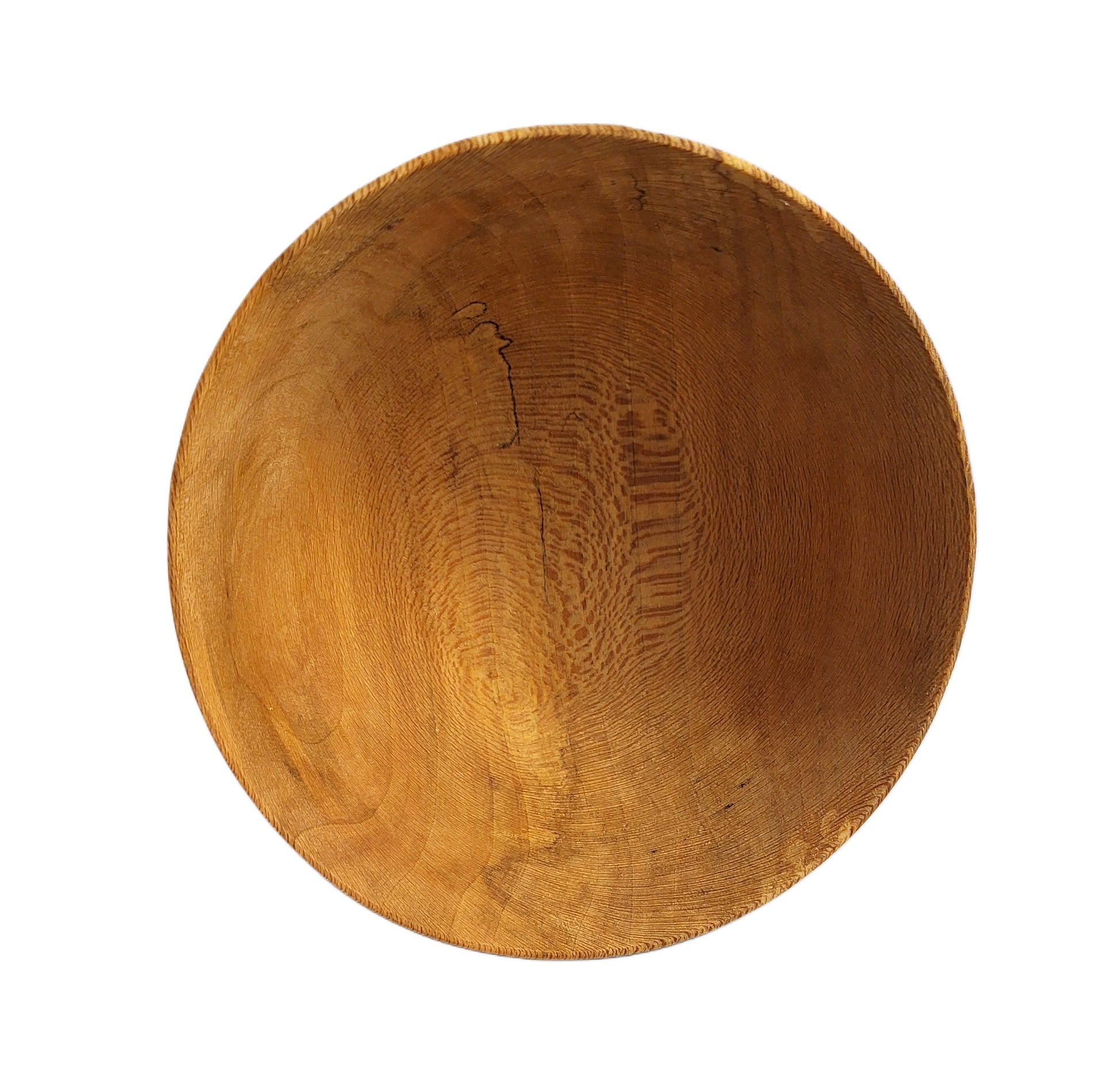 This Spalted Sycamore bowl is nicknamed the "Big Bottom Bowl" because of its wider base. The bowl was crafted from kiln-dried Spalted Sycamore wood and features a nice, deep medium-sized design. The bowl has a wide mouth, slightly curves at the center, and opens to a wide base. The bowl is finished with a food-safe quality finish.
